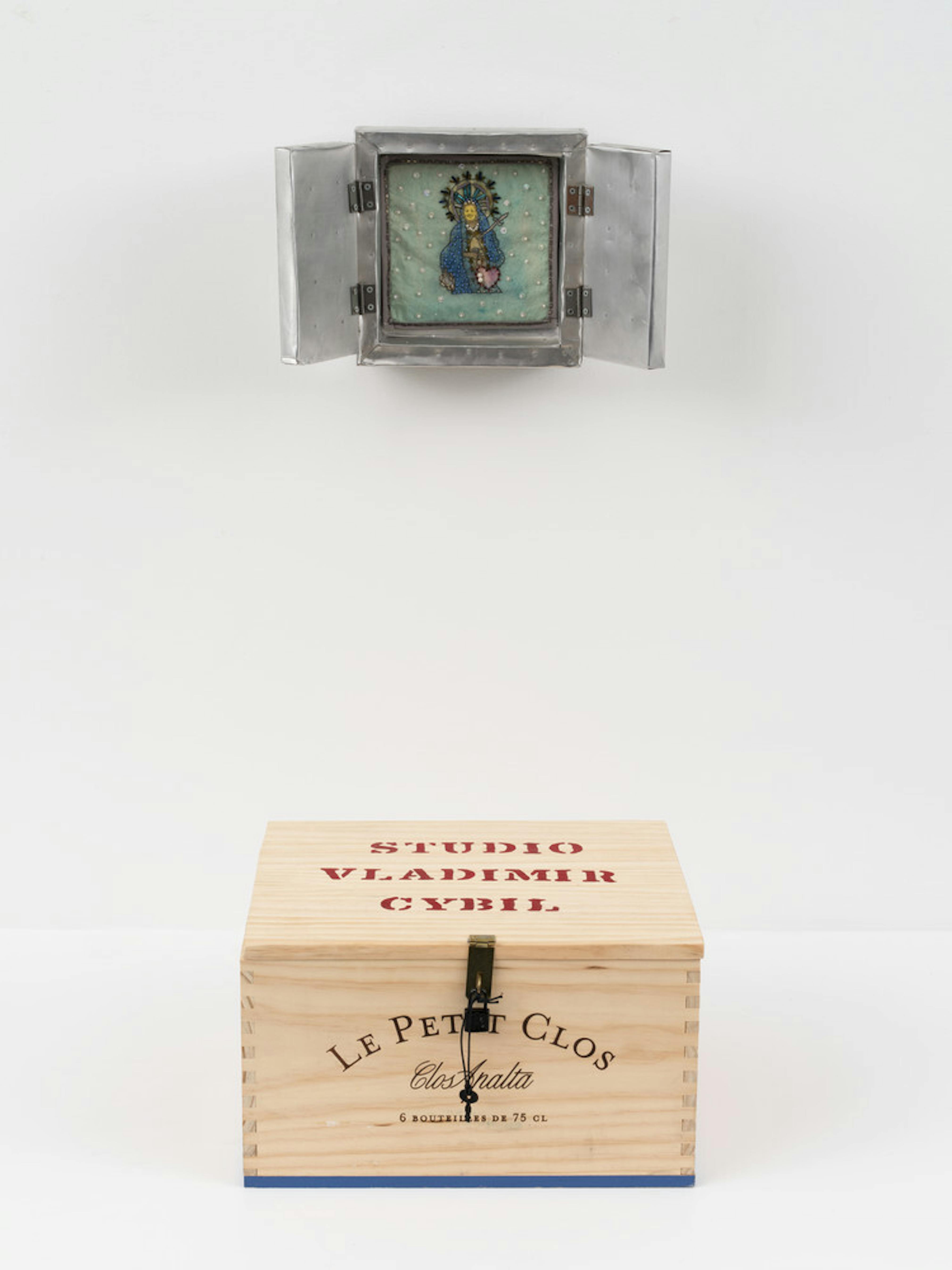 Aluminum, fabric, acrylic, sequins, beads, and hardware