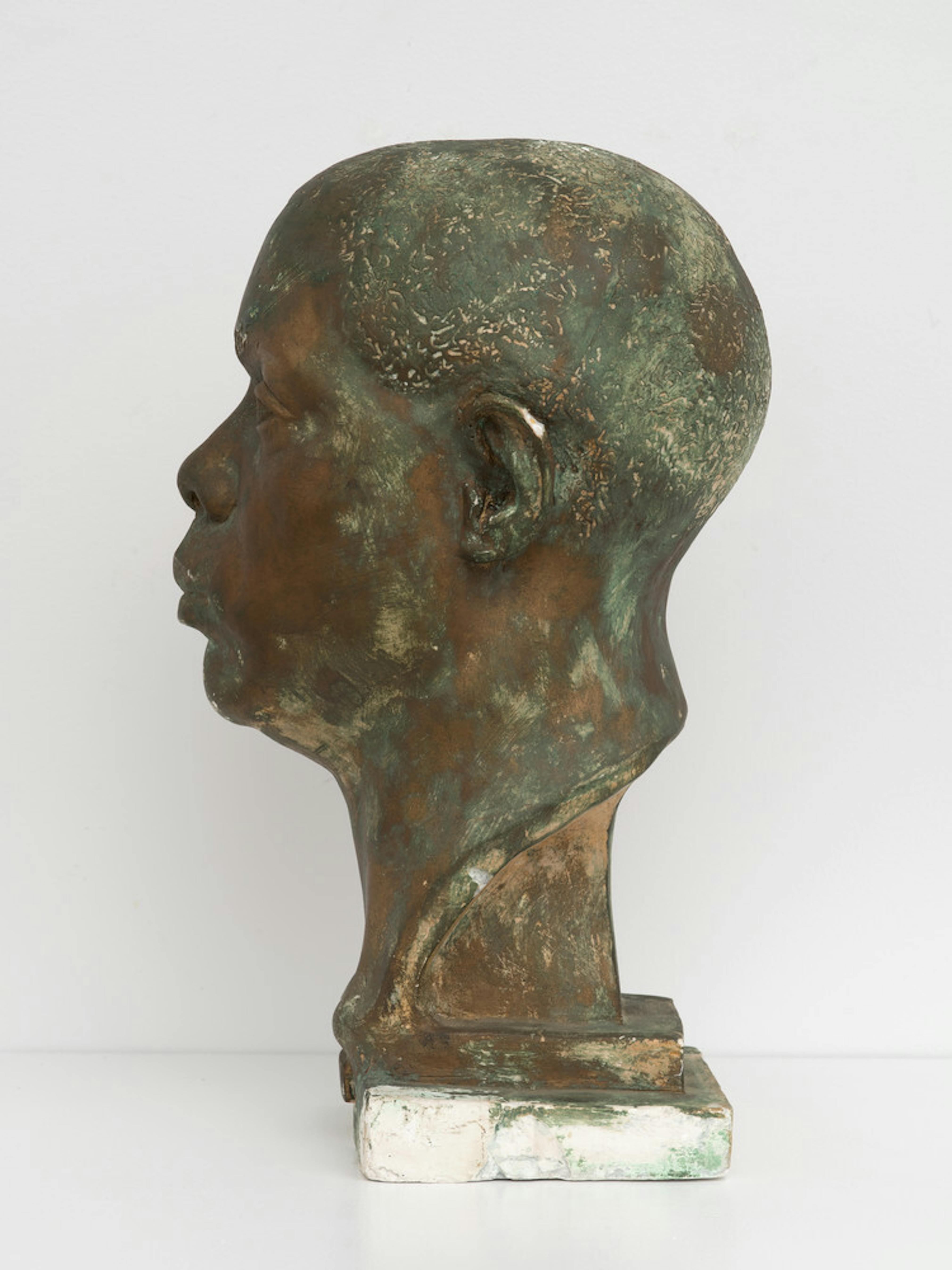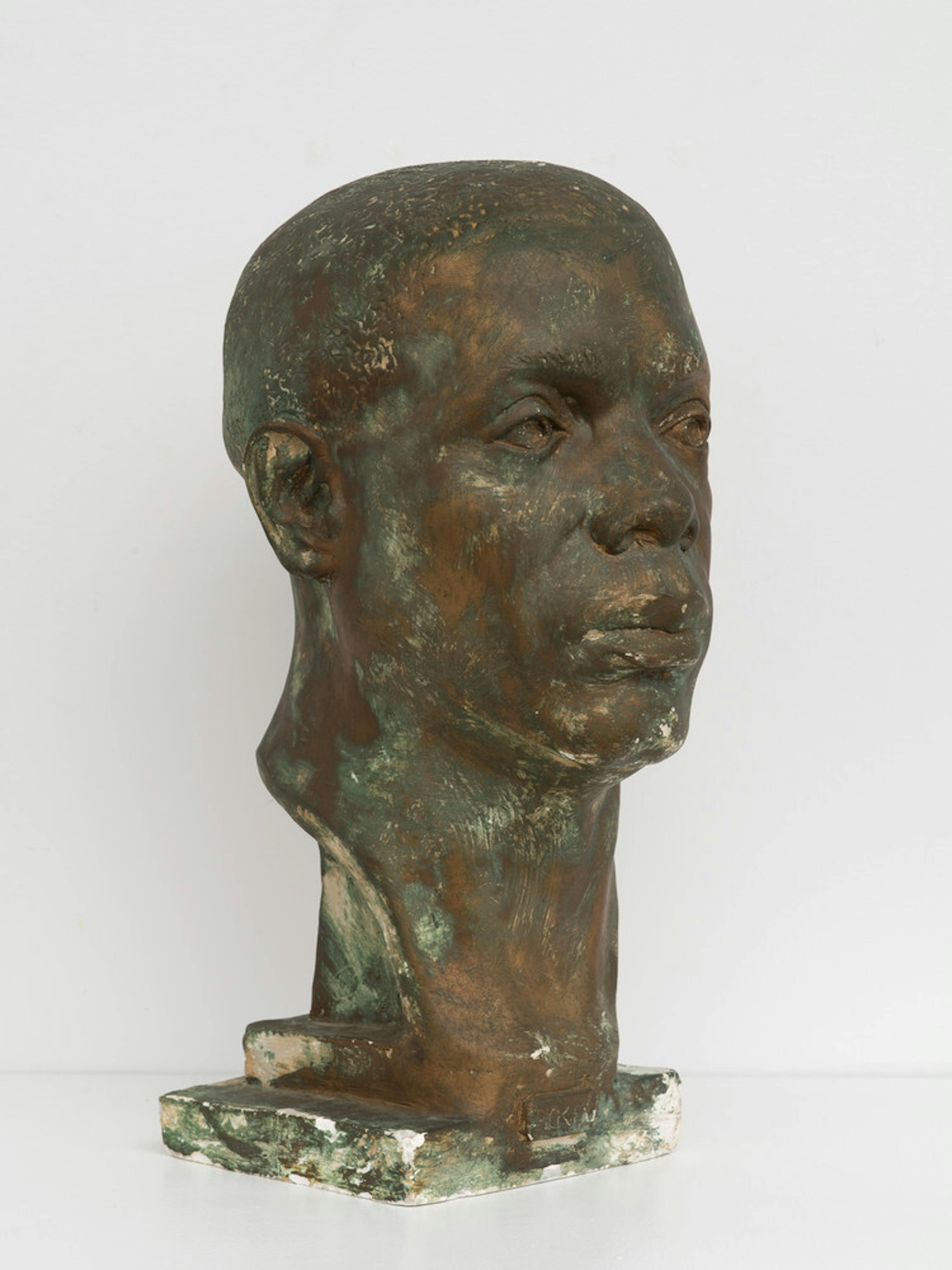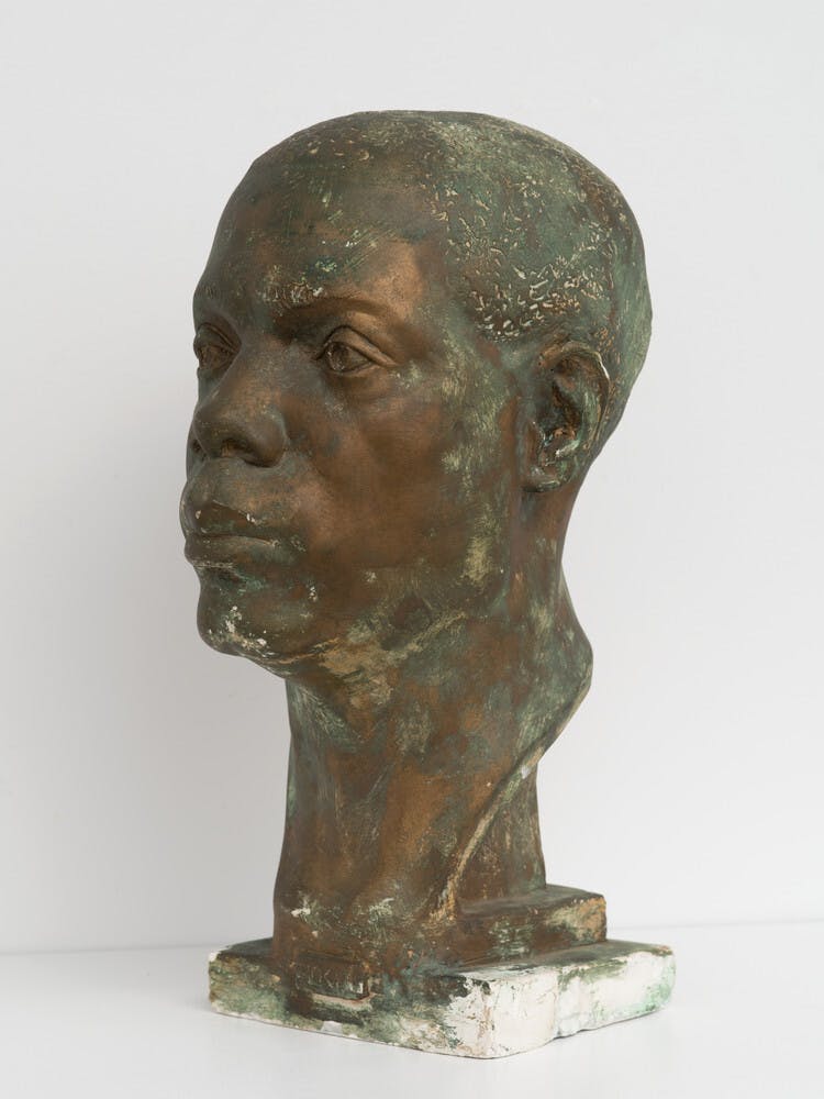Dr. William Pickens, Sr., depicted here in painted plaster, was Field Secretary and then Director of Branches for the National Association for the Advancement of Colored People (NAACP) in the 1920s and 30s. An activist herself and a key figure in the Harlem Renaissance, Augusta Savage portrays Pickens with a calm and resolute expression. She earned a reputation in the 1920s for her lifelike and ennobling portraits, and became an influential teacher to artists including Robert Blackburn and Jacob Lawrence.