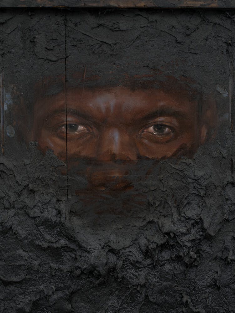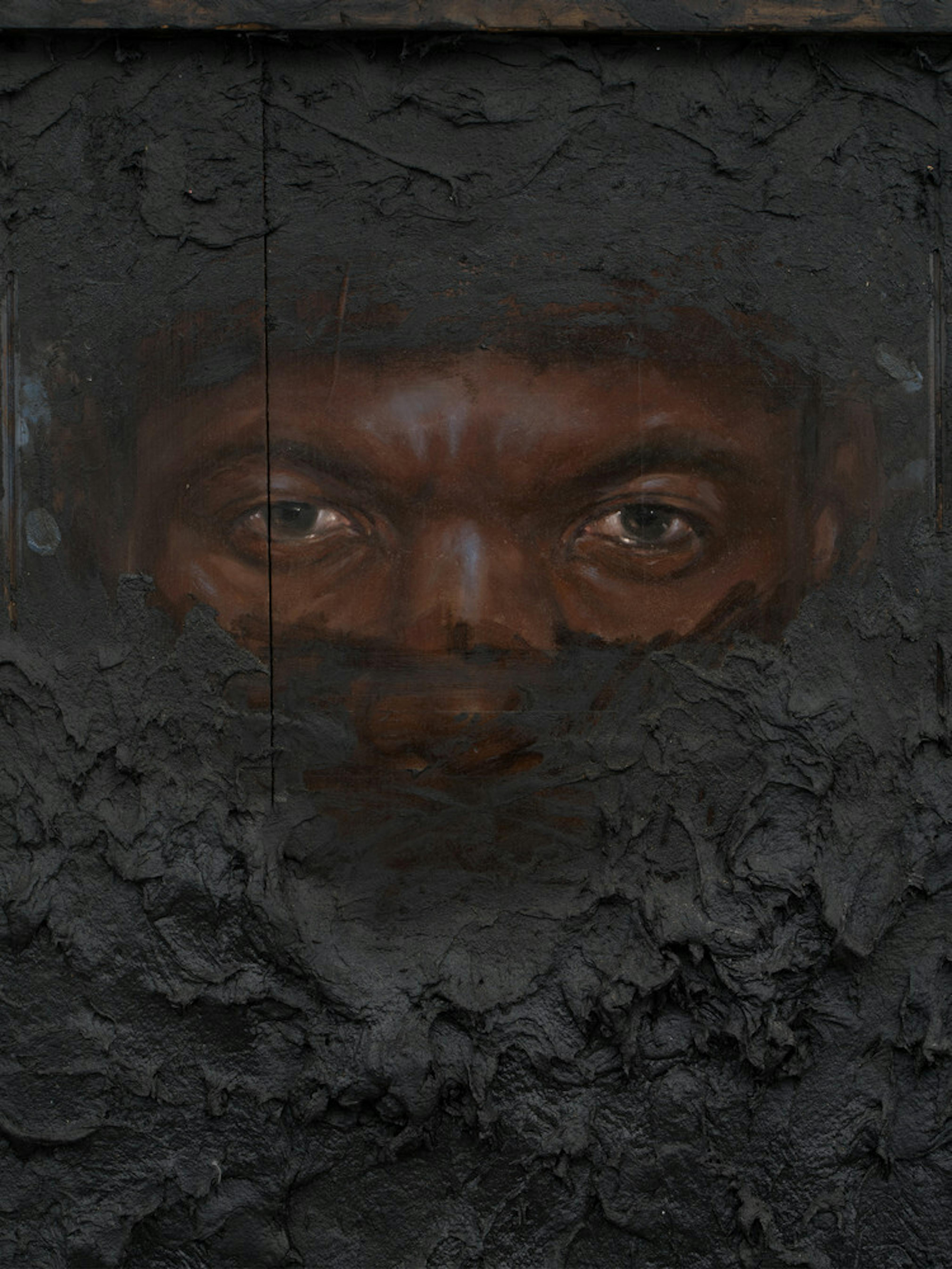 Oil and tar on antique and found panel