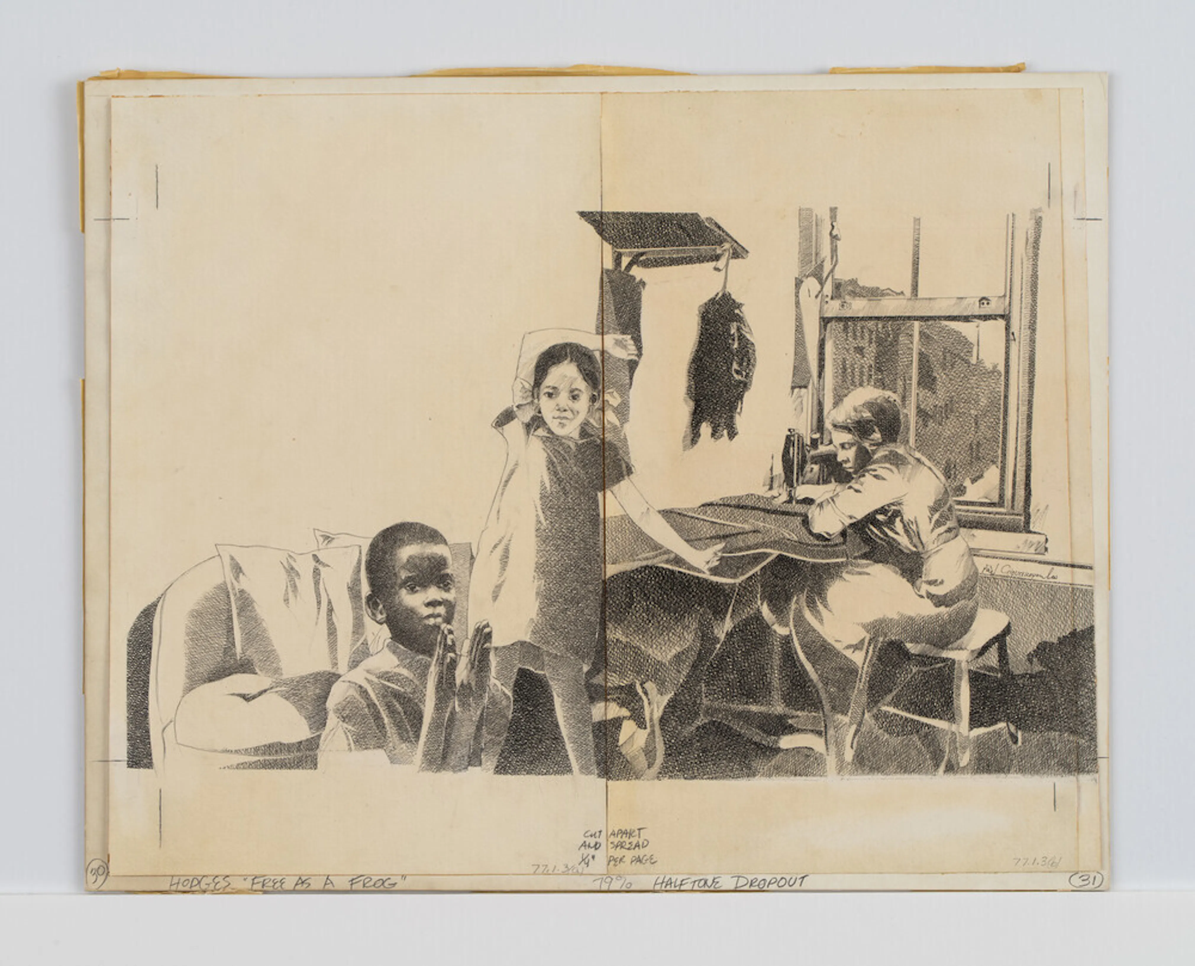 Pencil on card, mounted on illustration board with instructions to printer
