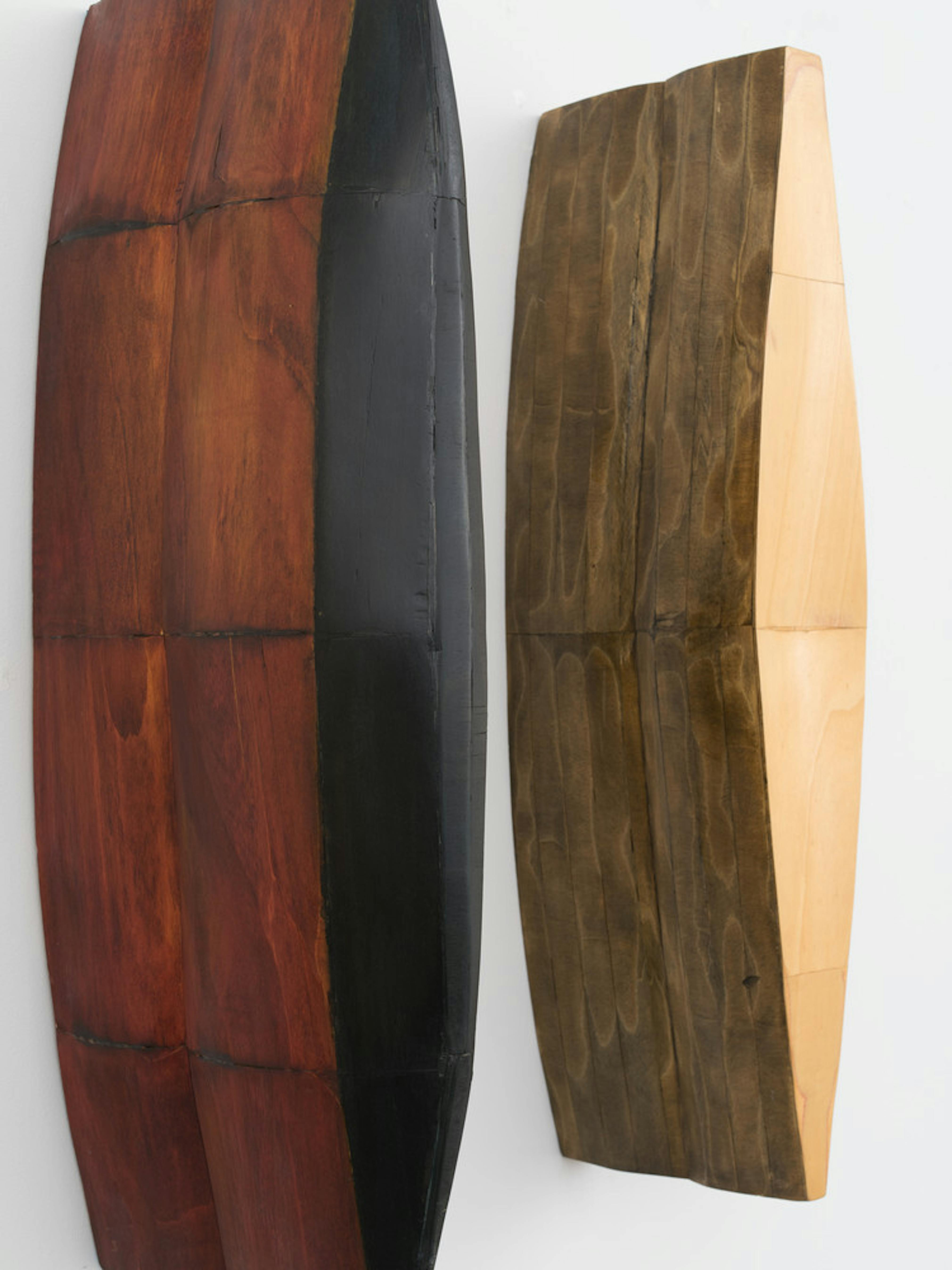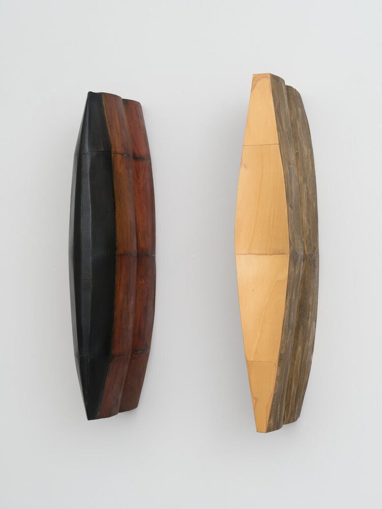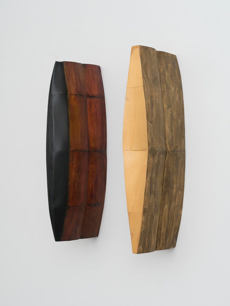 Left Sculpture: 40 × 7 × 15 1/2 in. Right Sculpture: 40 × 6 1/4 × 11 1/4 in.