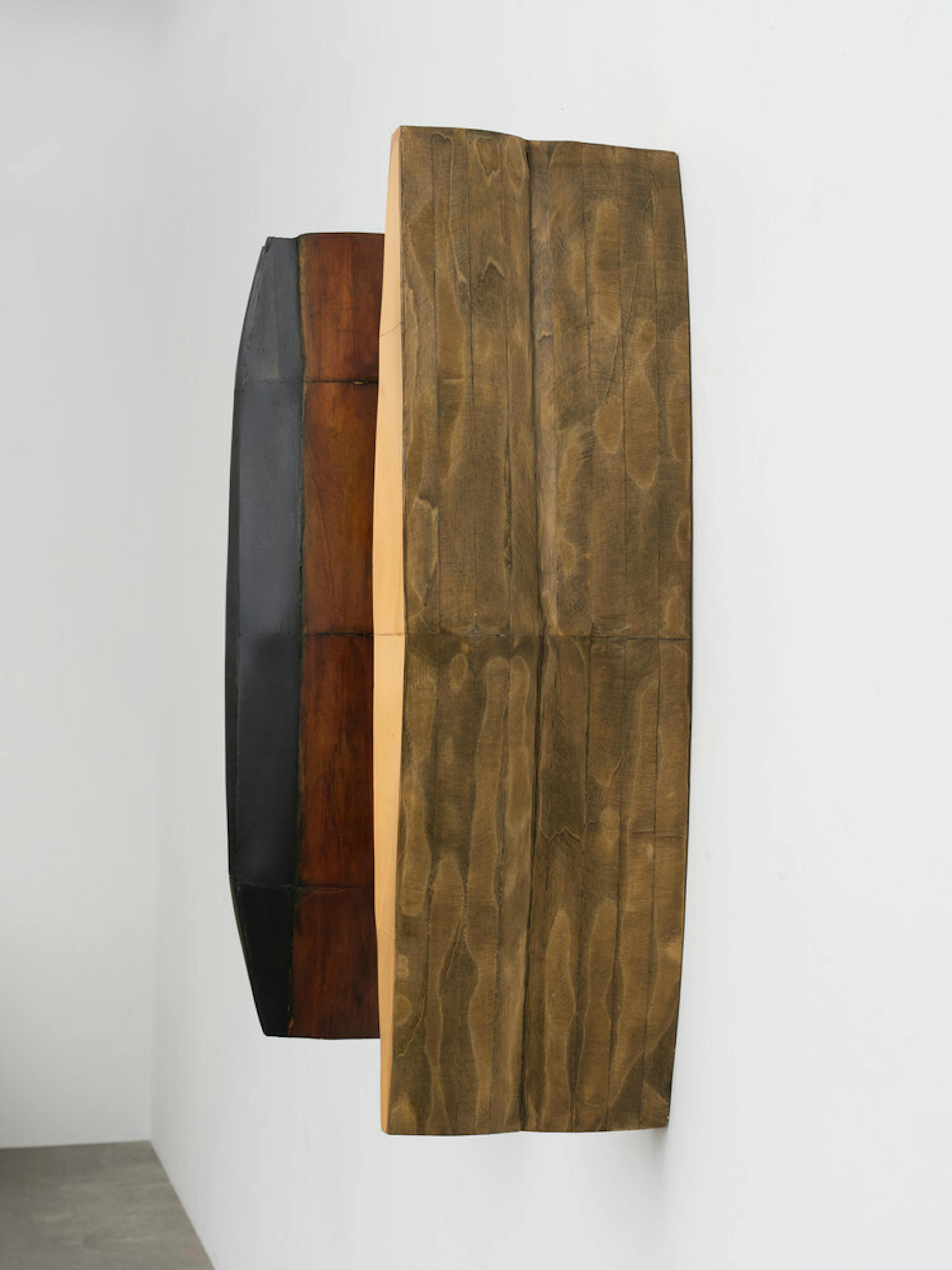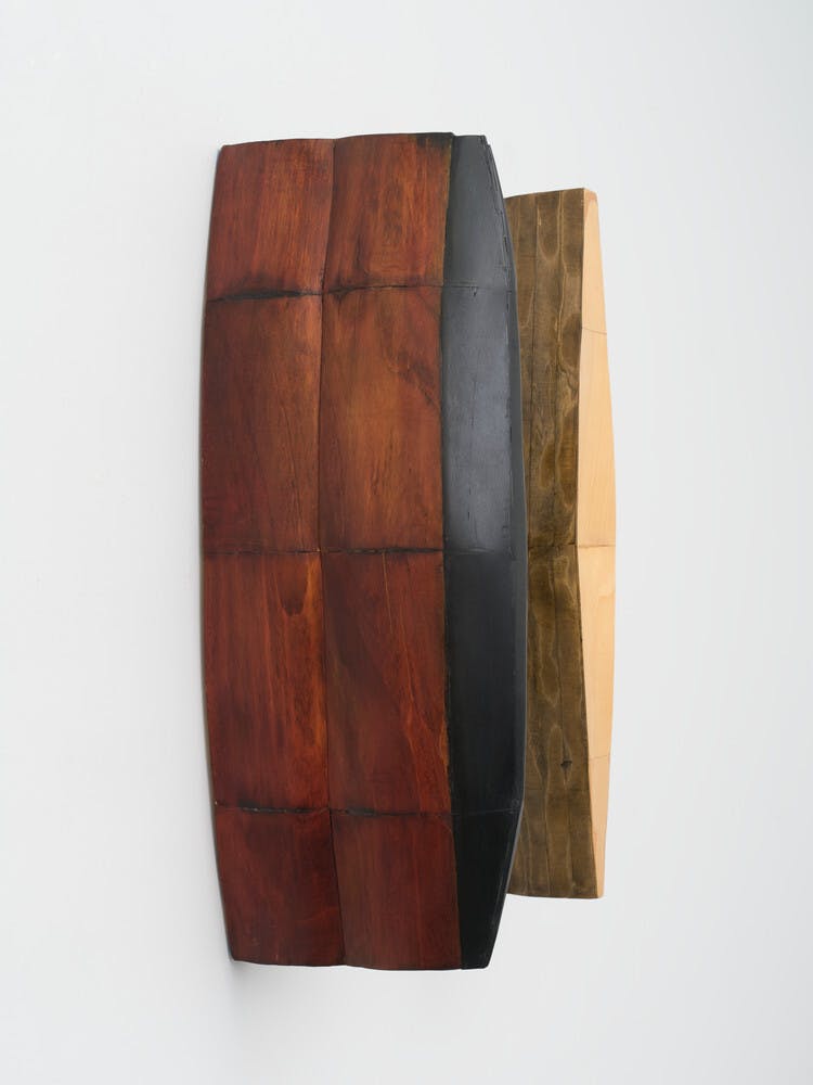 An interdisciplinary artist who incorporated a vast knowledge of history and mysticism in his work, Terry Adkins presented modern perspectives on the legacies of culturally significant figures. In Magus and Adnachiel, the oblong shapes represent two individuals in conversation. Magus is either one of the three biblical wise men or a sorcerer of the dark arts, while Adnachiel is a guardian angel mentioned in astrological texts. The sculpture’s contrasting colors bring to mind the diverging narratives of dark and light that are associated with the two figures.