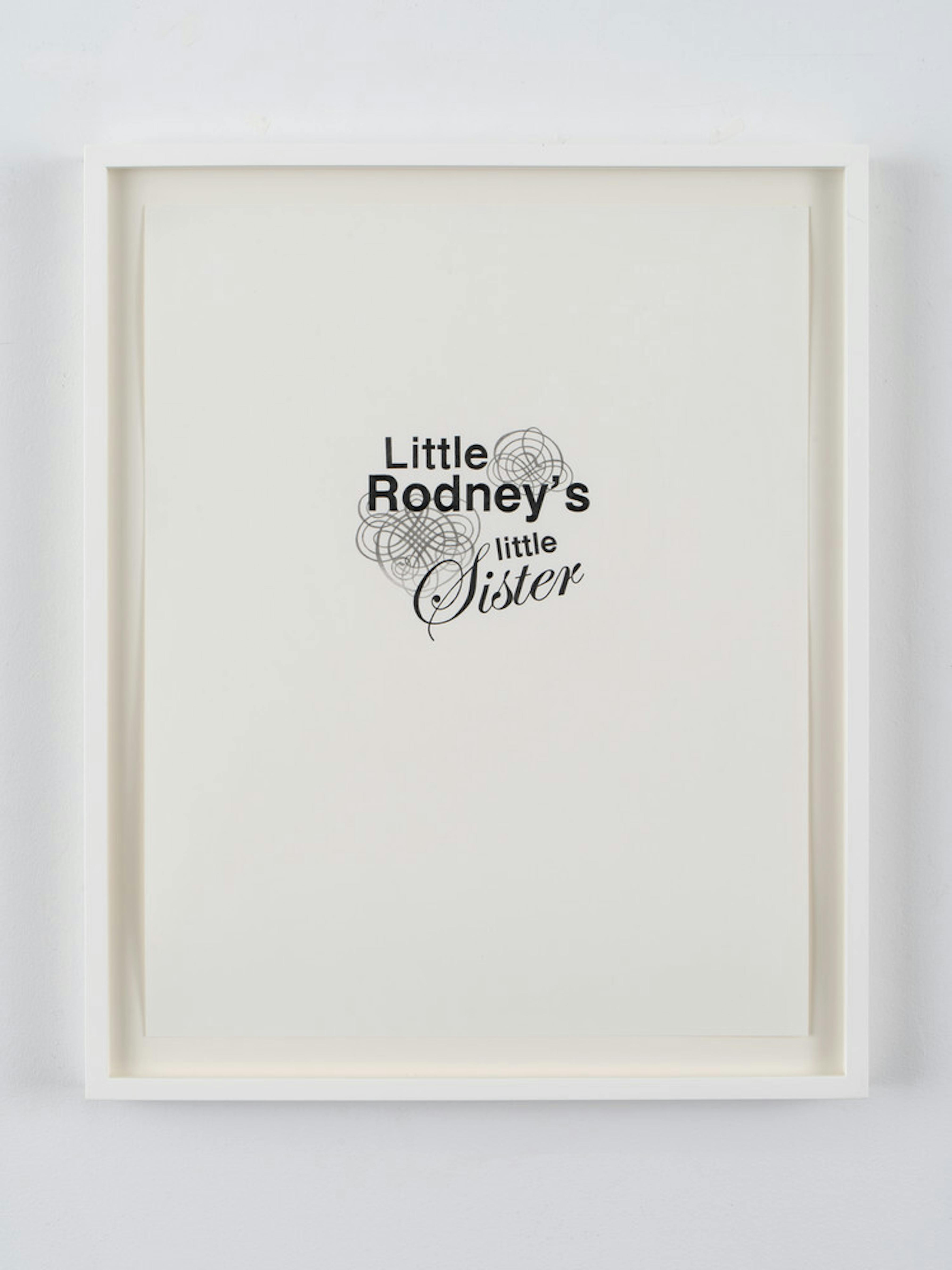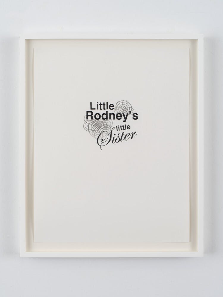 Sadie Barnette’s multimedia practice often highlights the ties between the aesthetic, the personal, and the political. In this series of drawings, texts in different typographical styles describe her relationship to various family members. Barnette's drawings underscore that her artistic experimentation is grounded in knowledge she learned as a daughter, sister, granddaughter, and niece.