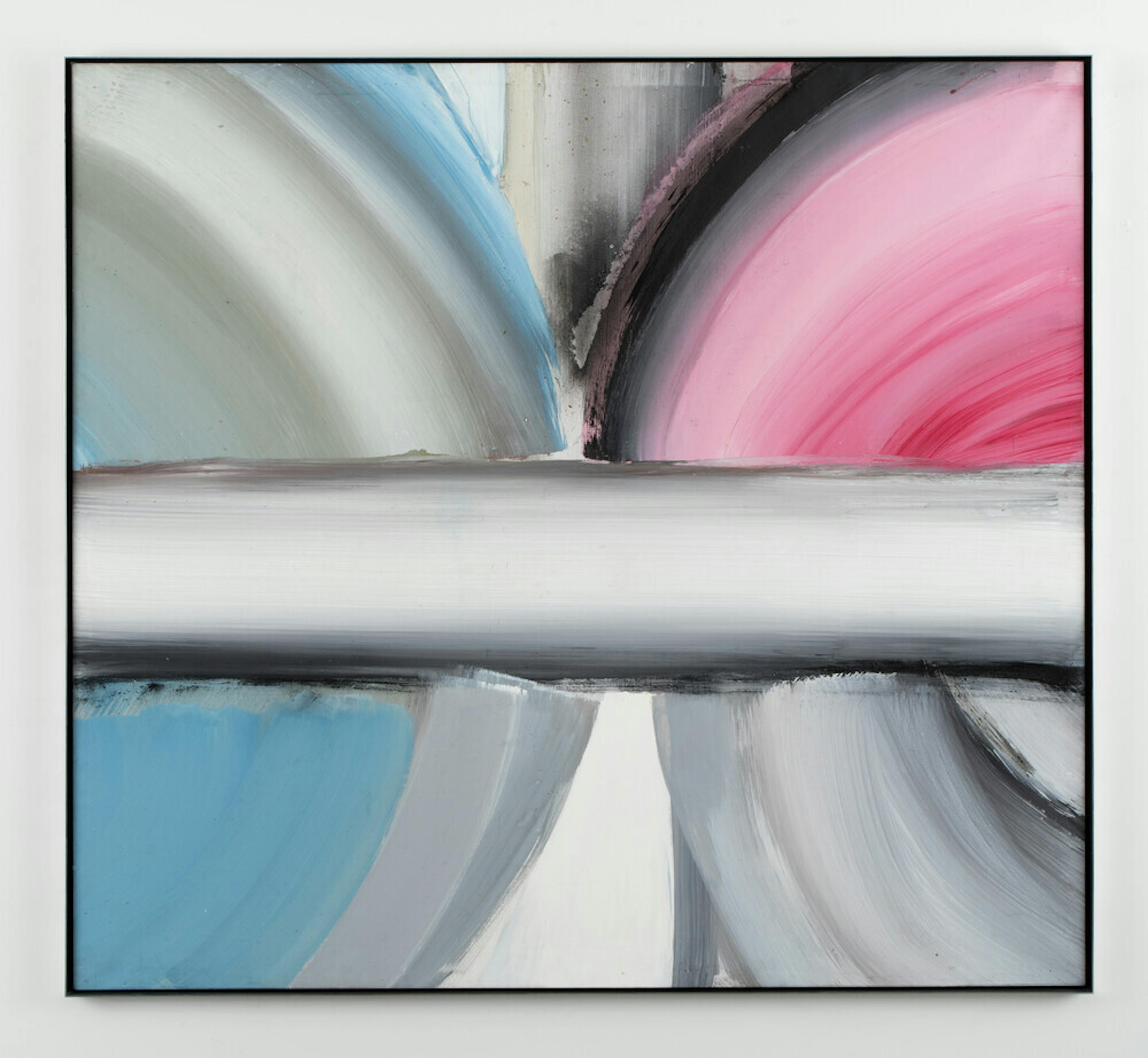 In 1956, in Paris, Ed Clark first began spreading his canvases on the floor and pushing piles of paint across the surfaces with large, utilitarian brooms. This process became his signature method, which he favored for its magnitude of gesture and its speed. In Untitled (Paris Series), one can easily imagine the broom swiftly interrupting the blue and pink swirls in one oversized stroke. The forms seem to blur, moving so quickly as to shift out of focus.