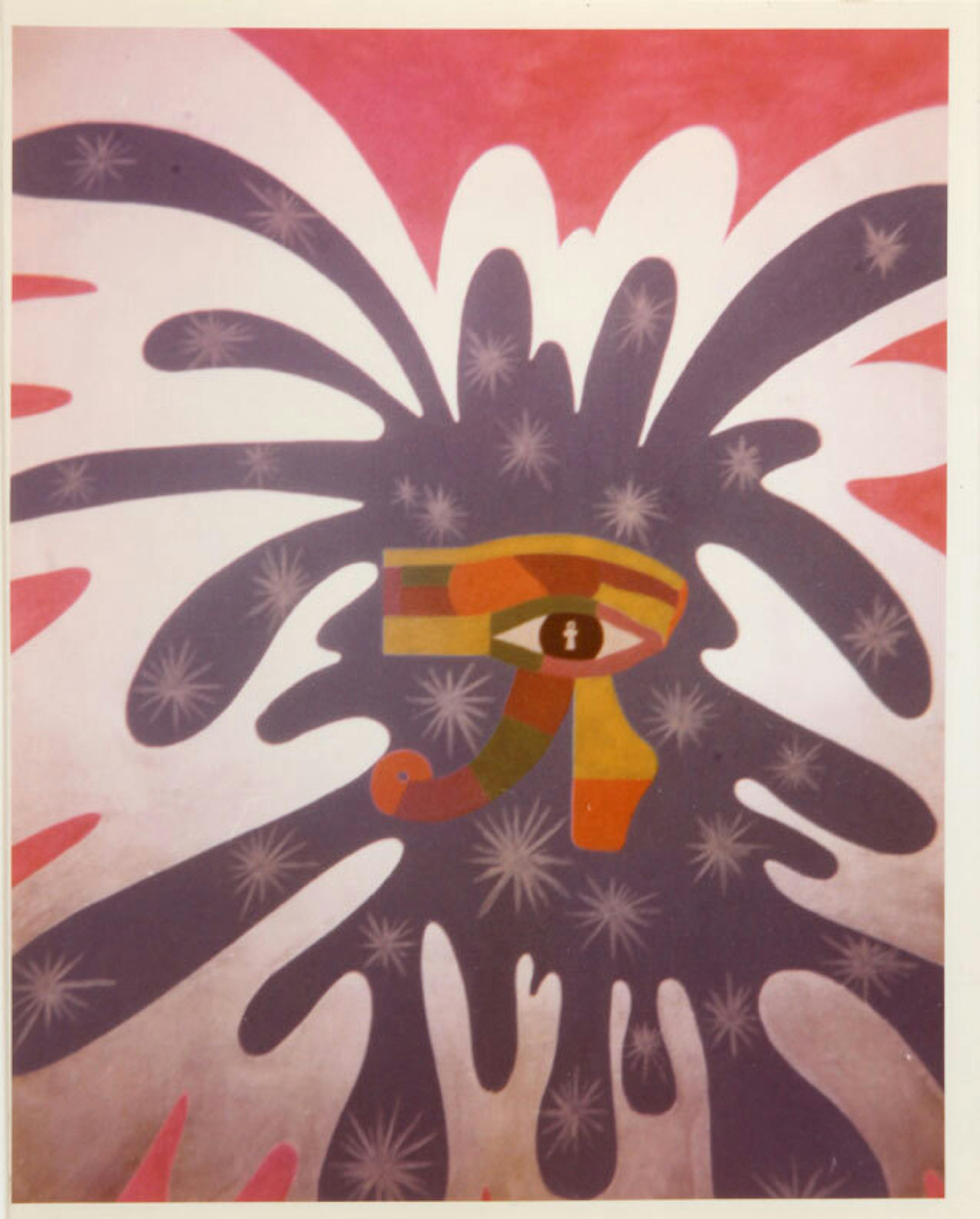 In the late 60s and early 70s Ayé A. Aton (b. 1940) painted murals in homes in both Chicago and his home state of Kentucky. A disciple of and frequent collaborator with composer, poet and Afrofuturist pioneer, Sun Ra (1914–1993), Aton created murals combining references to and imagery from ancient Egypt, Christianity and outer space. This collection of over 200 slides documents Aton’s murals through image and sound, providing an intimate glimpse into the domestic lives of an African-American community on the cusp of cultural transformation. Ayé A. Aton: Space-Time Continuum marks Aton’s first solo museum presentation.
