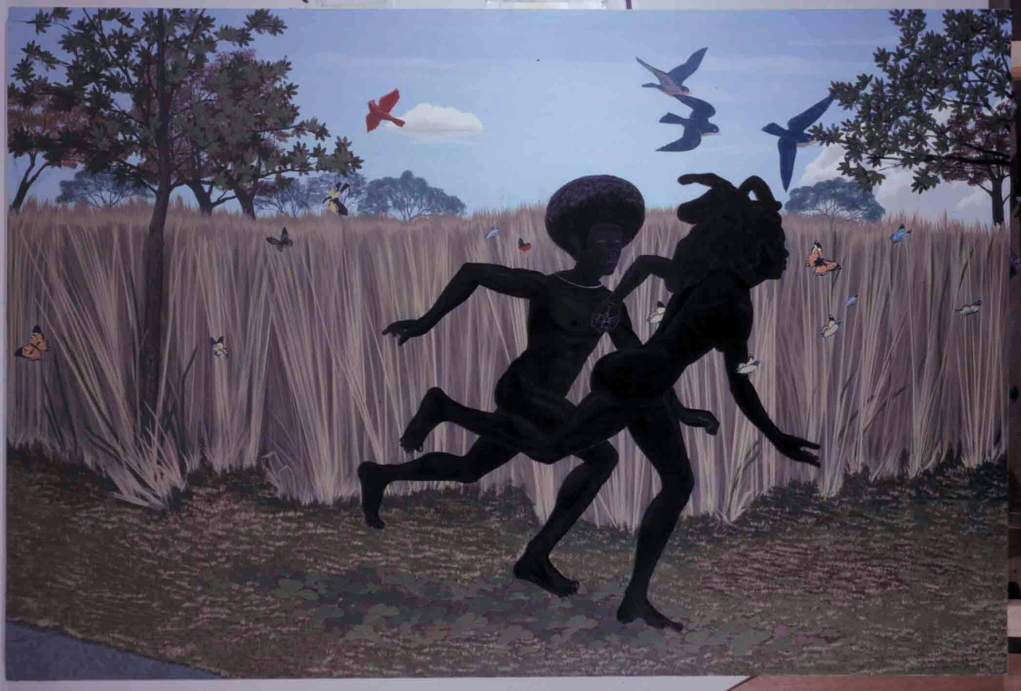 This solo exhibition represents the culmination of five years of work by the acclaimed Chicago-based artist Kerry James Marshall. He is known primarily for his monumental paintings of African-American subjects based on the traditional genre of narrative history painting. Marshall will present over 30 works in all media including sculpture, installation, photography, video and printmaking. The newest body of work, One True Thing, simultaneously pays homage to and critiques the notion of a Black aesthetic. Stemming in part from Marshall’s recent comic strip, Rhythm Mastr (2000) –in which an urban superhero battles the forces of evil using a combination of futuristic and traditional African accoutrements—Marshall amplifies and extends the references to embrace a wider range of media and multiple readings of Black imagery. As the titles and subtitles suggest, these works seek to raise intriguing and often confounding questions about the role of the artist and the institution in defining positions in artistic practice.
