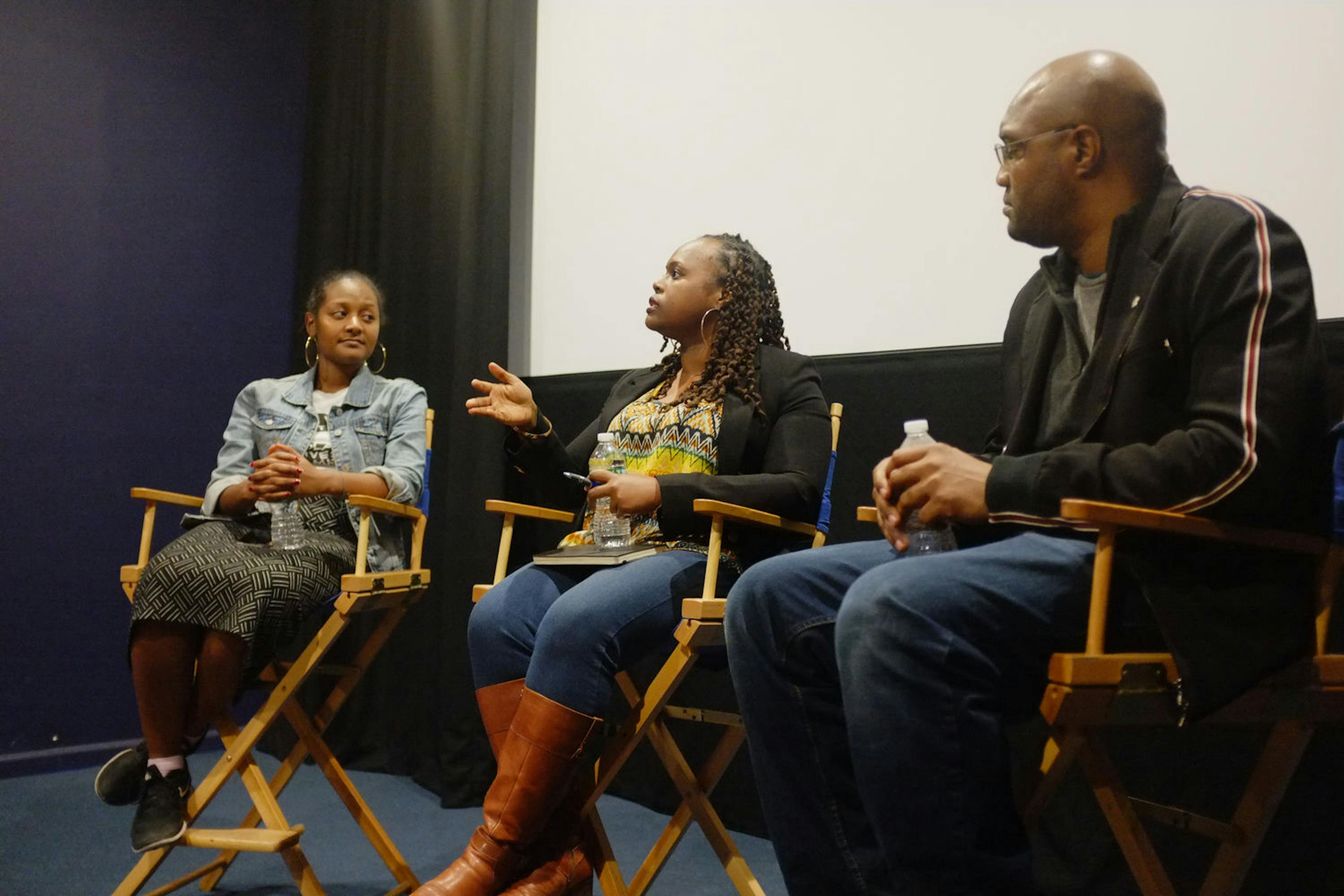 Rachell Morillo, Jamila Lyiscott, and Quenell Jones in conversation following a screening of Hustlers Convention (2015) as part of Studio Screen, February 19, 2017. The program is presented at Maysles Cinema as part of inHarlem