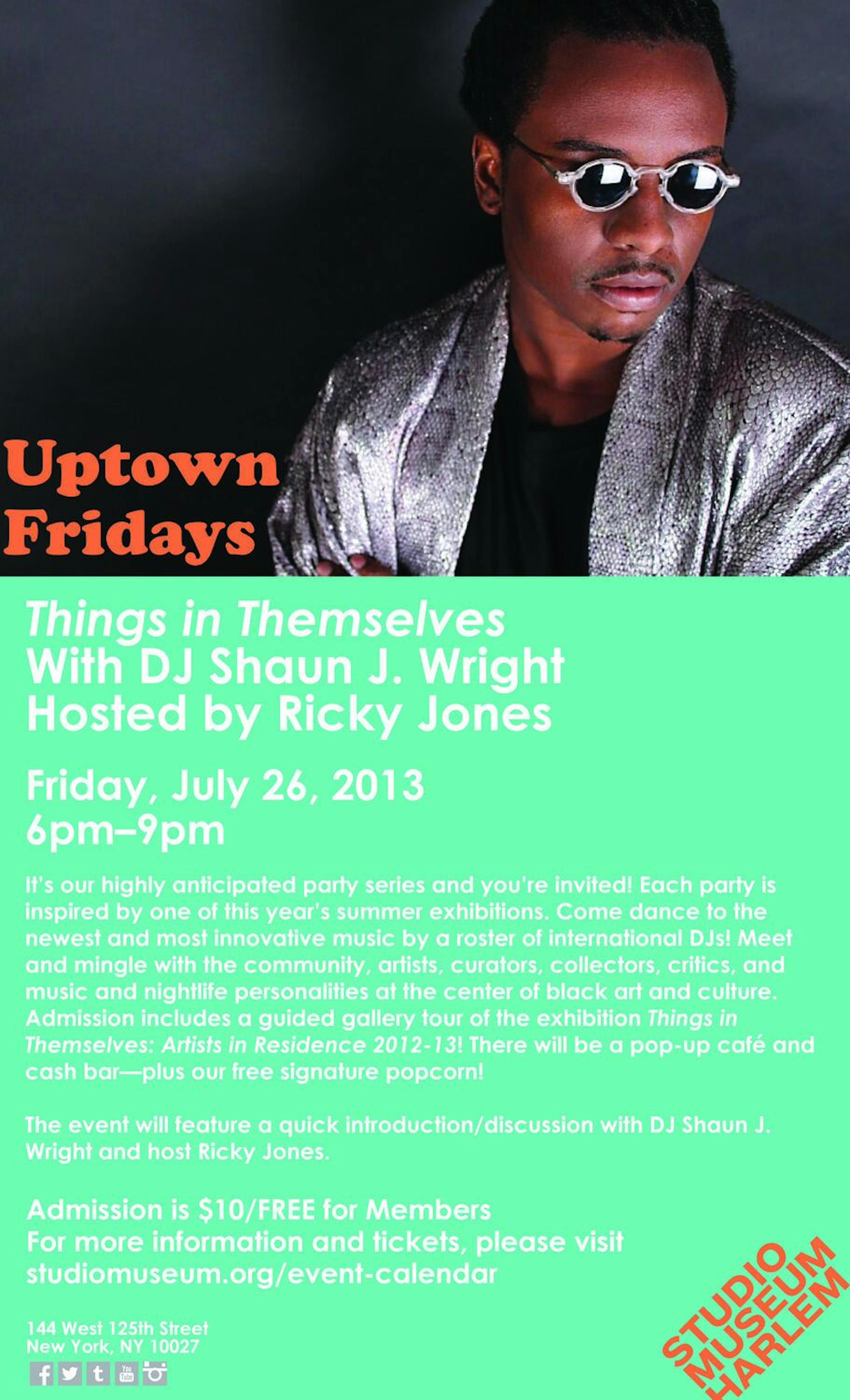 Uptown Fridays begins. This summer event invites visitors to dance in the Museum’s courtyard, browse the galleries, and attend curatorial talks. Uptown Fridays are presented with exhibitions on view and allow writers, scholars, and critics to share conversation.