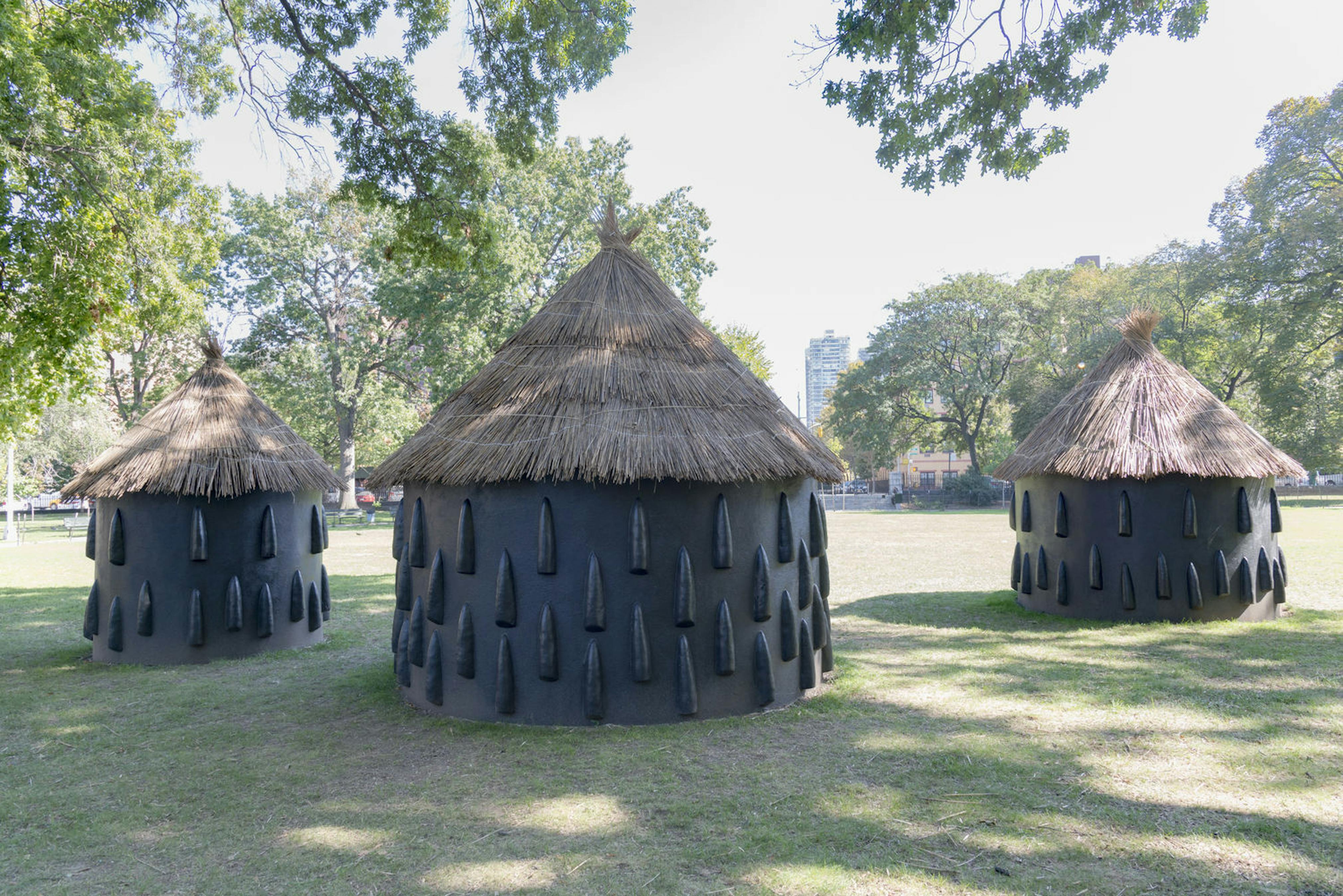 Simone Leigh, A particularly elaborate imba yokubikira, or kitchen house, stands locked up while its owners live in diaspora (installation view), 2016. Marcus Garvey Park, New York, NY, August 25, 2016–July 25, 2017. Photo: Adam Reich