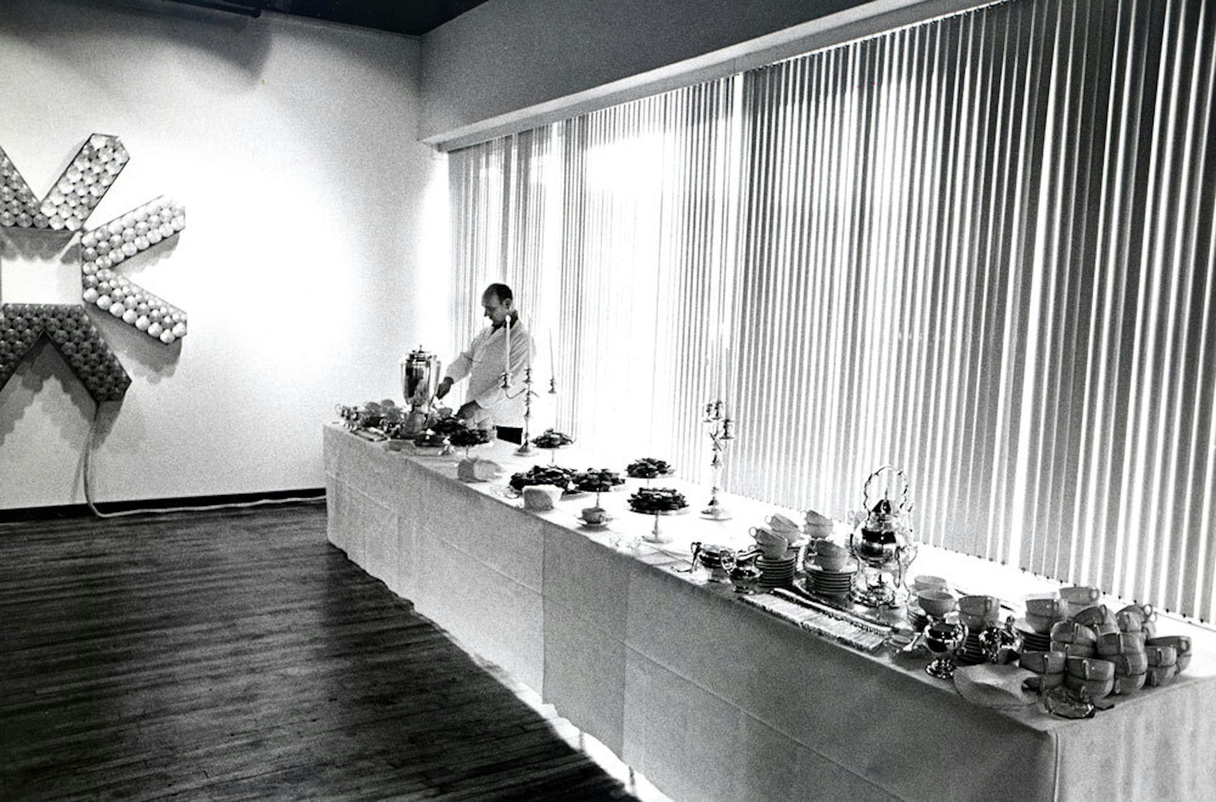 View of the September 1968 opening of Electronic Refractions II, the inaugural exhibition at the Studio Museum's first home at 2033 Fifth Avenue