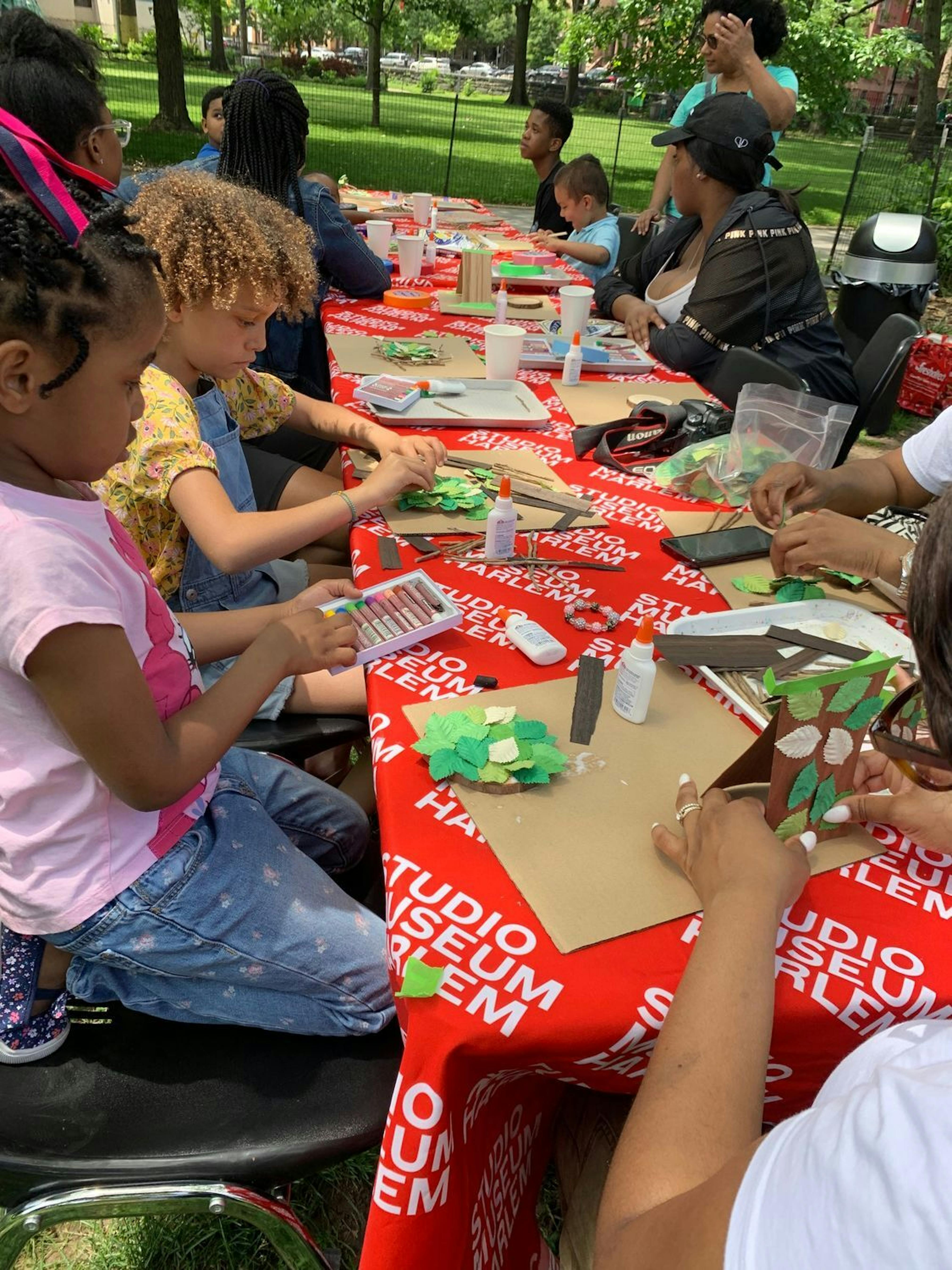 Families come together in Marcus Garvey Park to make artwork in response to the inHarlem project Maren Hassinger: Monuments, 2019