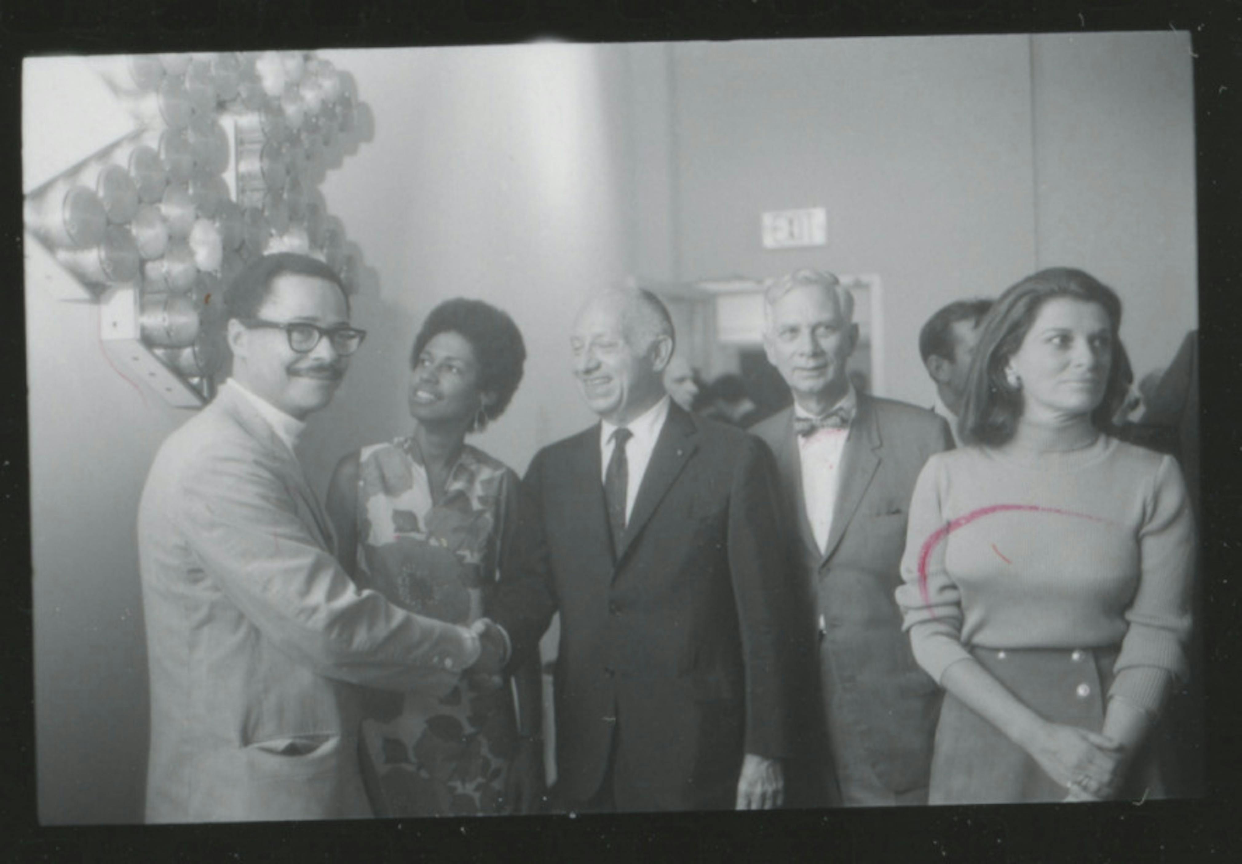 Tom Lloyd, Eleanor Holmes Norton, and others at the opening of Electronic Refractions II, 1968
