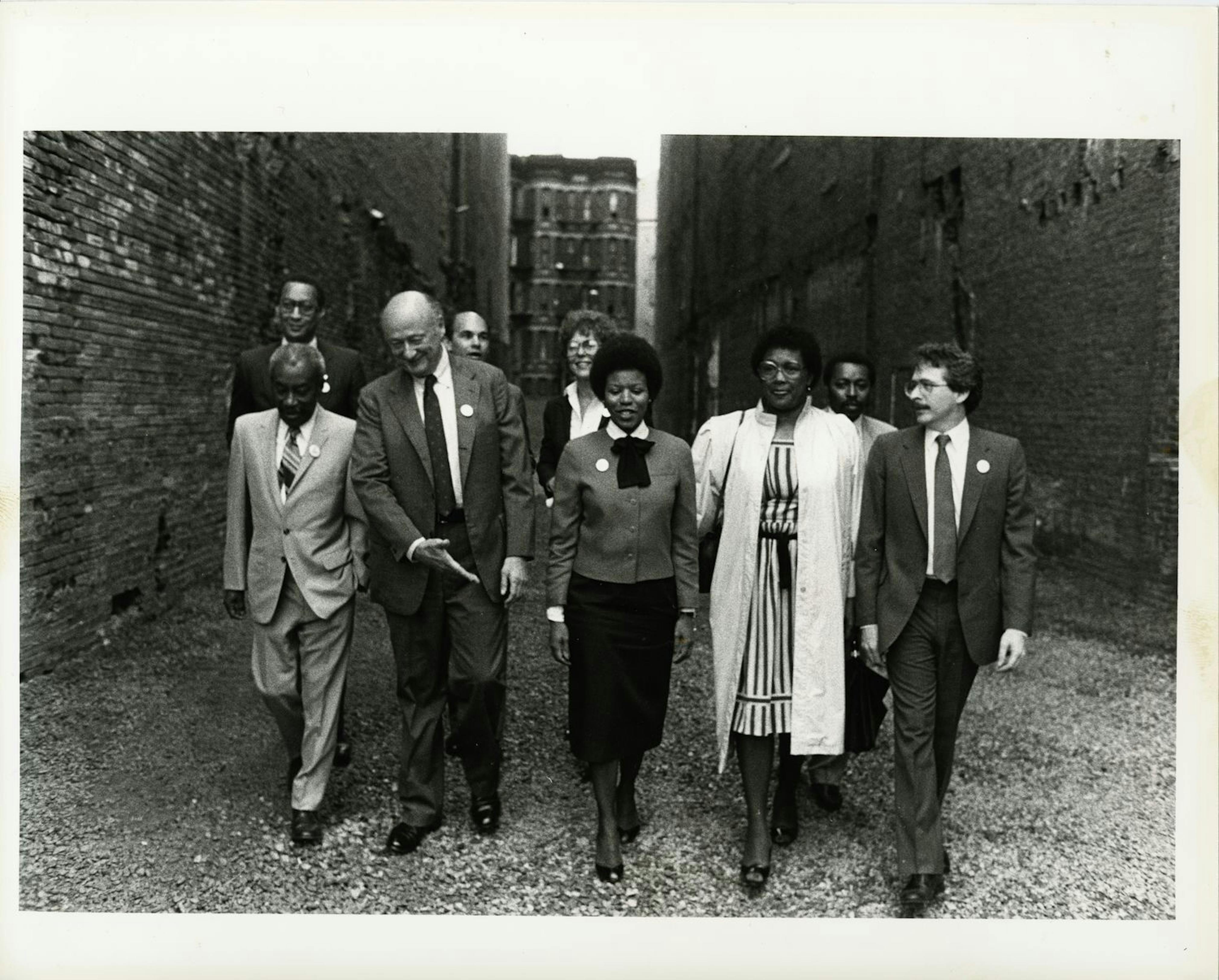 Groundbreaking for the Studio Museum in Harlem on May 20, 1981 at 144 West 125th St. (L to R) Carl McCall, Mary Schmidt Campbell, Arthur Barnes, Robert Carroll, and Fred Samuel.